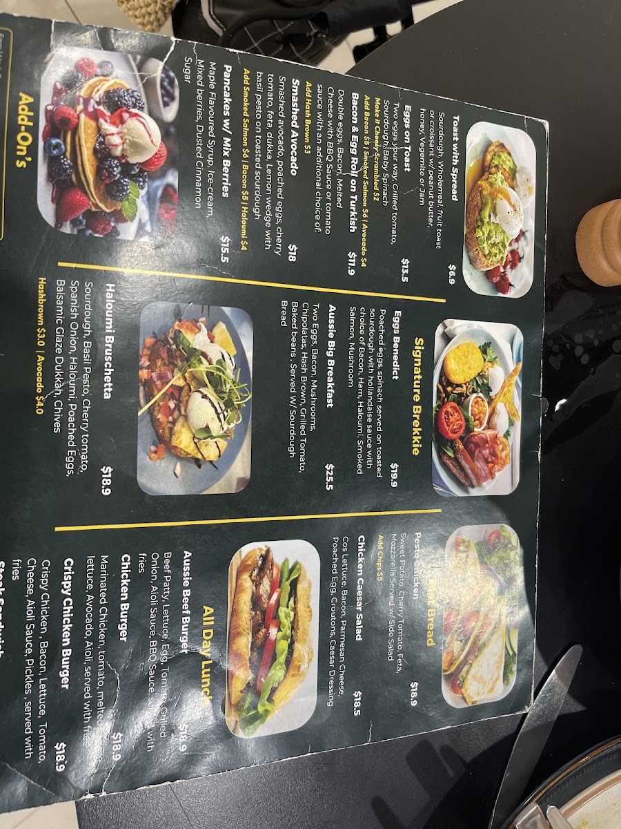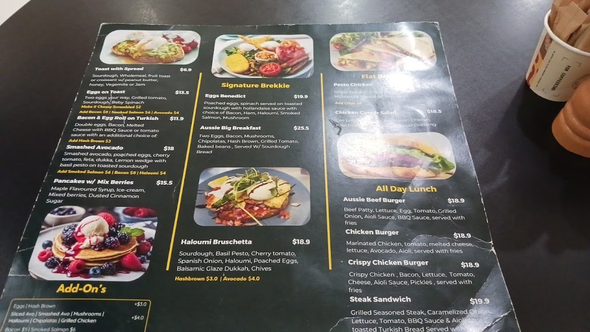 The standout options include the Aussie Beef Burger and the Crispy Chicken Burger, both priced at A$18.90, promising flavors that delight with each bite. For lighter fare, try the Pesto Chicken Flat or the Chicken Caesar Salad, each available for A$18.50. You can also indulge in the luxurious Pancakes with Mixed Berries for just A$6.90, a perfect sweet treat.